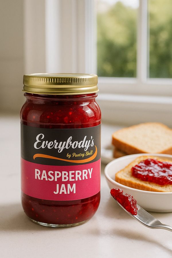 Tart and sweet raspberries captured in a rich jam. Perfect for scones, pancakes, or as a cake filling.